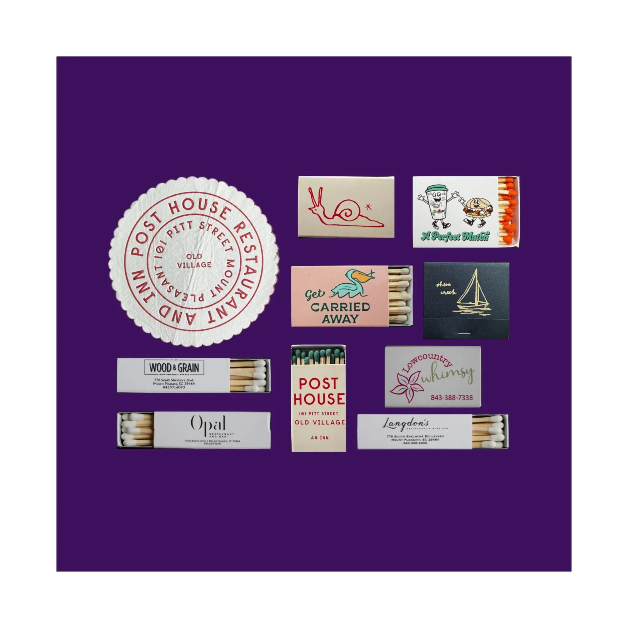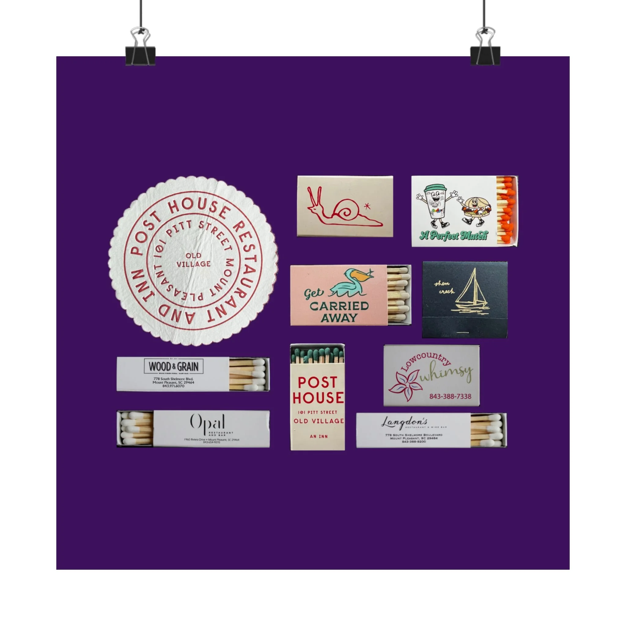 A collection of matchbooks located in Charleston's Mt. Pleasant neighborhood.Introducing the perfect means to print art on – the premium matte vertical posters. Made with museum-grade paper, these posters translate any digital artwork into exquisite real real-life decor. Each poster is printed with top-tier pigmented archival inks for a stunning end result.