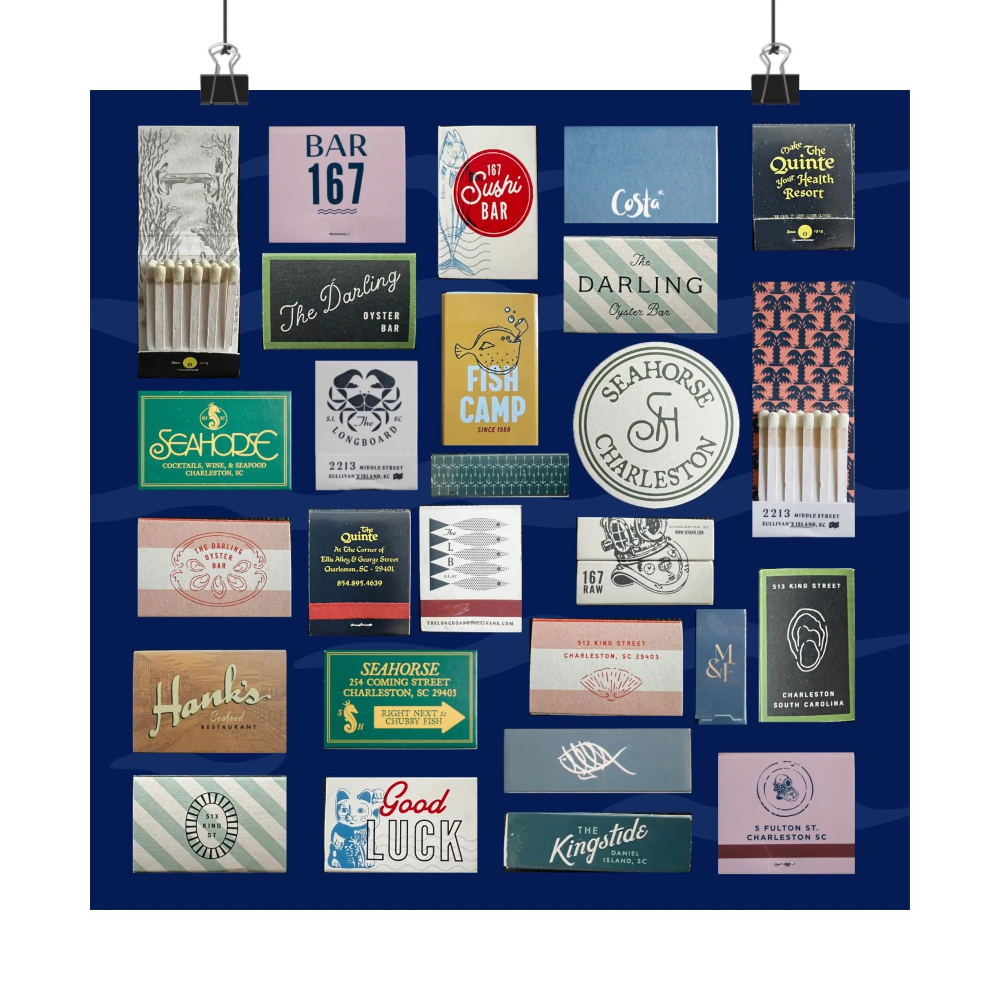 A collection of matchbooks from Seafood spots in Charleston. This premium matte horizontal poster is made with museum-grade paper and is the perfect means to bring any digital artwork into real life as stunning decor. Each poster is printed with top-tier pigmented archival inks for excellent printing results.